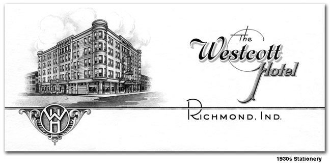 Designed by W. S. Kauffman, the Westcott Hotel was intended to be the "premier hotel of Indiana" in its heyday. The Grand Opening was September 10, 1895, and all the biggest names in the city were guests that night. The Commercial Club, a precursor to the Chamber of Commerce, spearheaded the drive to build it and actually owned it until 1899, when the club fell on hard times. J. M. Westcott, early Richmond business leader and the man for whom the hotel was named, assumed ownership. By the 1970s, the hotel was no longer a premier hotel, and with the interstate highway system, tourists were no longer driving on US 40 through town. The Westcott closed in 1976 and was razed in 1977. |